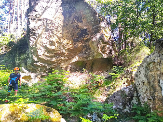 Descenso por el mismo camino hasta un cruce donde a la izquierda se interna una senda entre pinares, técnica y divertida por el cruce de Astillero y cogemos la senda hornillo, también bonita senda hasta las proximidades de Regumiel