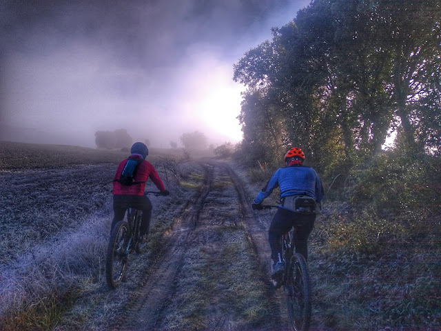 Salimos de Vitoria con una buena helada -4º por el pueblo de Yurre para cruzar la N1 por un puente y por la pista junto a la N1 nos vamos hacia el pueblo de Estarrona para continuar por asfalto a Martioda, y pisteamos hacia Hueto Abajo.